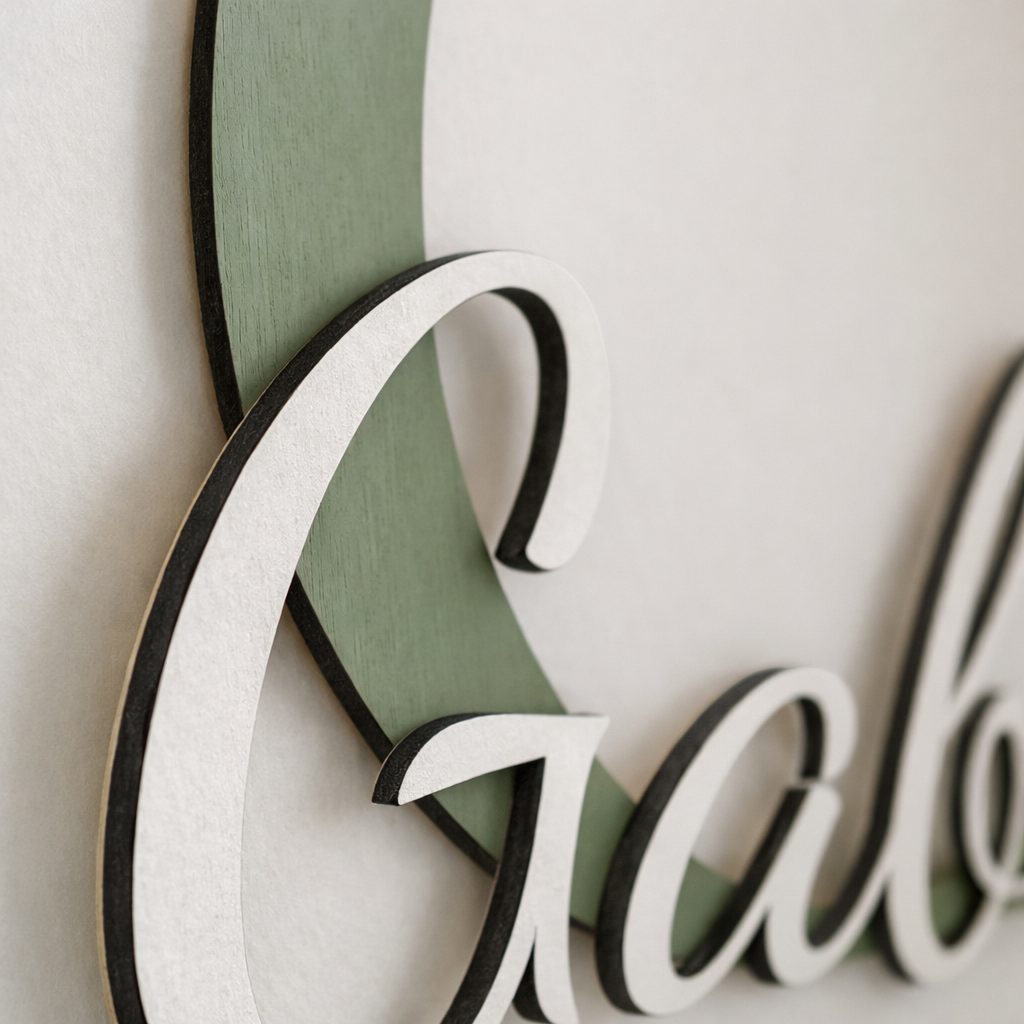 Cette initiale décorative avec prénom est pensée comme un bel objet de décoration, à la fois élégant, chaleureux et intemporel, pour personnaliser une chambre d’enfant avec subtilité.